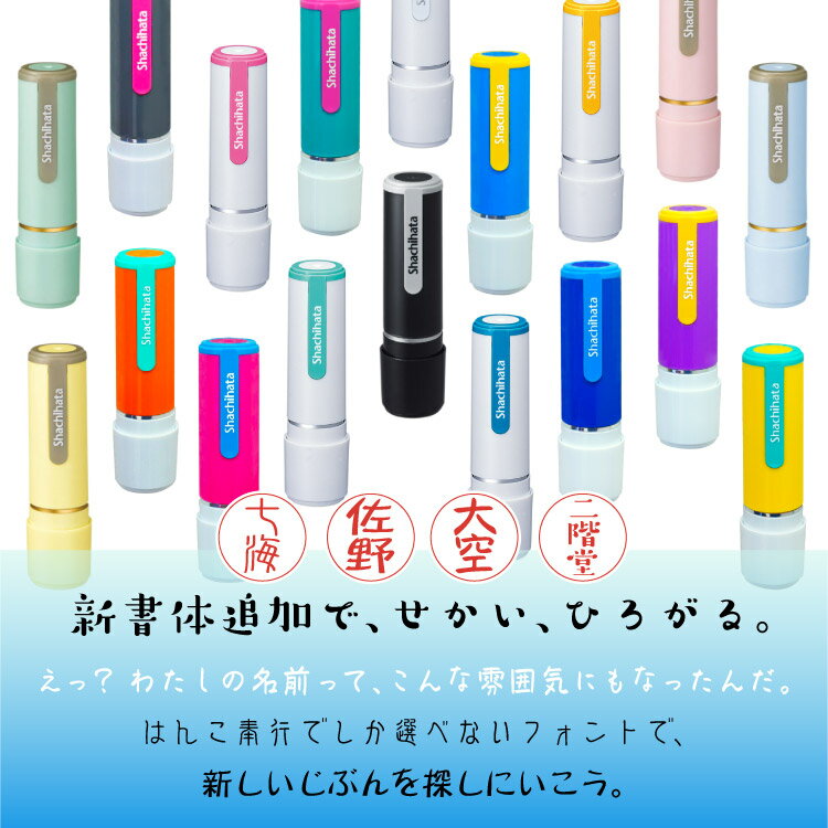 おかげさまでランキング上位常連! >>もっとレビューを見る ご注文方法についてご確認ください シヤチハタ ネーム9 別注品カラーキャップつき ネーム印の本体サイズ/重さ 直径18.8×68.3mm/15.0g カラーキャップのサイズ/重さ 18.8×18.8×18.5/1.4g 印面サイズ 直径9.5ミリ インキの色 6色から選択可能です。