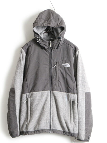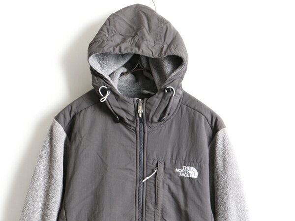 ■ ノースフェイス フード付き デナリ ジャケット ( レディース L ) 古着 The North Face ブルゾン パーカー フリース ナイロン 切替 濃灰| 中古 ノース Denali Hoodie アウトドア フリースジャケット ジャンパー フーディ ポーラテック 2トーン 灰 グレー チャコールグレー