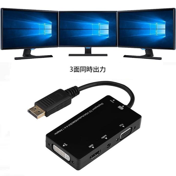 送料無料 DisplayPort to VGA&Audio/HDMI/DVI マルチ 変換アダプタ 3画面同時ミラーリング出力 DP-DVI(24+1)ピン/VGA ミニ D-Sub 15ピン/HDMI 映像1080P、3.5mmオーディオ出力For Lenovo/HP/Dellなど対応