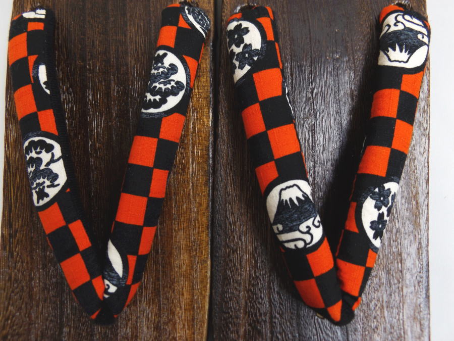 下駄 桐 メンズ 男性 大きいサイズ 焼茶台 赤色黒市松地古典紋様 3L 29cm 5L 30cm 浴衣 ゆかた 甚平 着物 男物 粋